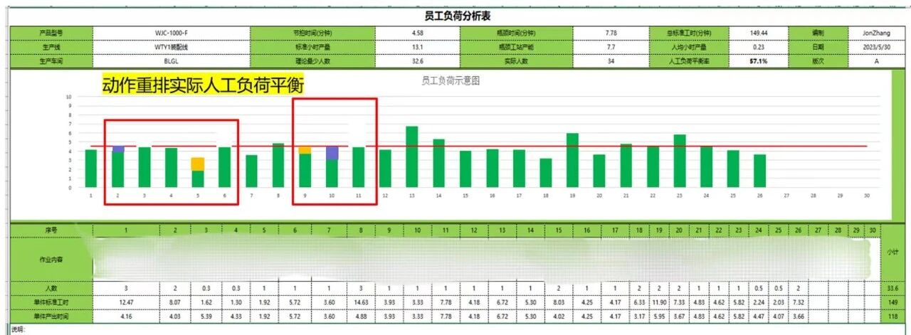 직원 작업량 비율은 역량 향상의 기본 요소입니다. 공정 간 사이클 시간이 일관되지 않아 실제 생산량이 상대적으로 낮았습니다. 이전 라인 밸런싱 개선을 통해 축적된 경험을 활용하여 ME 부서는 생산 라인 직원의 작업 부하 균형 비율을 높이기 위한 이니셔티브를 주도했습니다. ECRS 원칙(Eliminate, Combine, Rearrange, Simplify)을 적용하여 프로세스를 최적화함으로써 직원 업무량 균형 비율이 82% 이상에 도달했습니다.