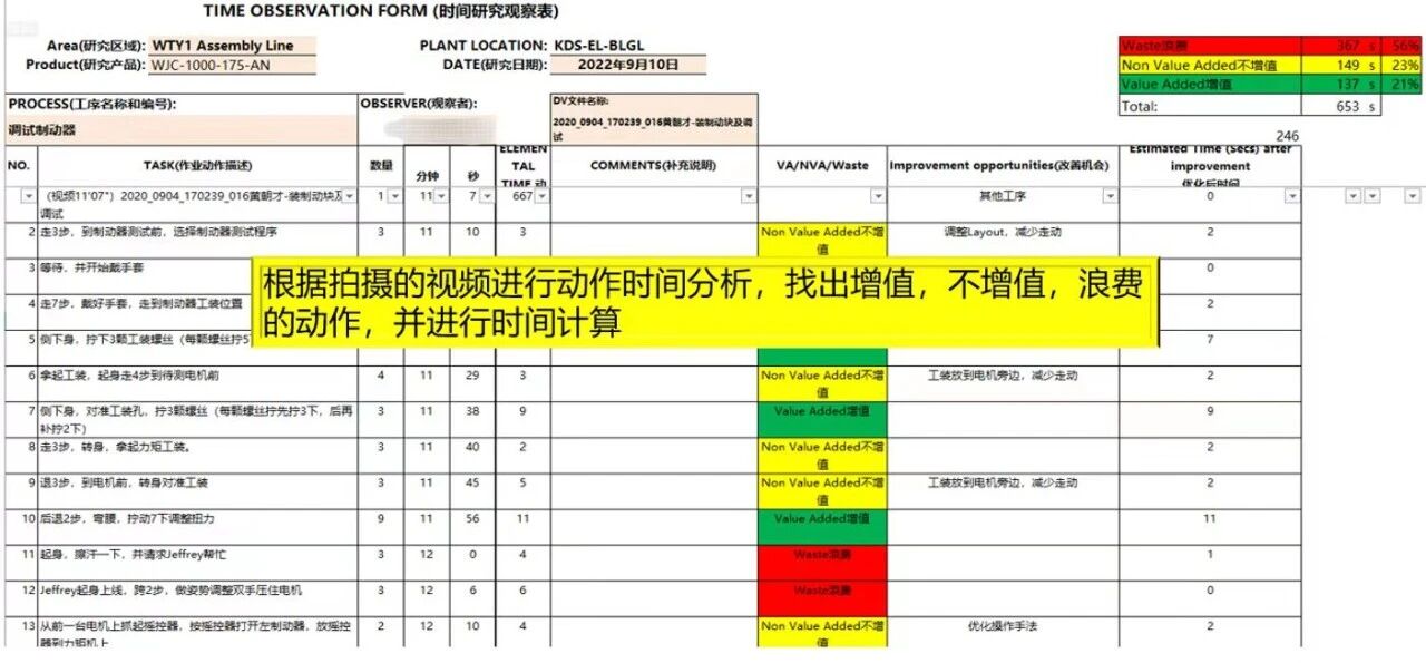 내부적으로 도입된 최초의 체계적인 개선 도구로서 시간 분석은 탄탄한 개선 경험을 축적해 왔습니다. 또한 전체 VSM 개선 추진에서 선구적인 역할을 수행하여 이전 개선의 연속이자 후속 프로젝트별 개선에 대한 링크 역할을 했습니다. 개선팀은 표준근로시간 원칙에 따라 각 공정별로 촬영직원 업무 전담인력을 배치했다. 팀원과 일선 직원까지 공동으로 영상을 반복 검토하고 업무 동선을 분해, 분석하고 집단 브레인스토밍을 통해 개선 기회를 발굴하고 제안을 제안해 개선 계획을 수립했습니다.