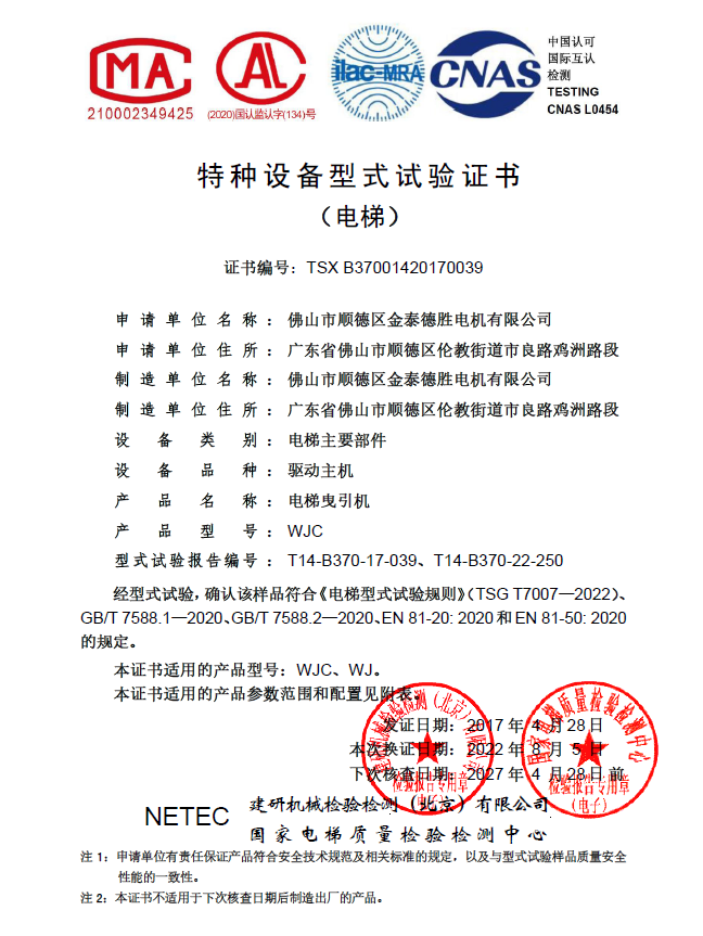 1. 중국의 국내 특수 장비 유형 테스트 인증 : 메인 엔진 타입 테스트, 자동차 상향 초과 속도 보호 및 의도하지 않은 이동 보호 장치 인증을 포함하여 모든 주요 엔진 시리즈의 인증을 포함합니다. 동시에, 완전한 엘리베이터 고객을위한 빠른 인증 지원 서비스를 제공 할 수도 있습니다.