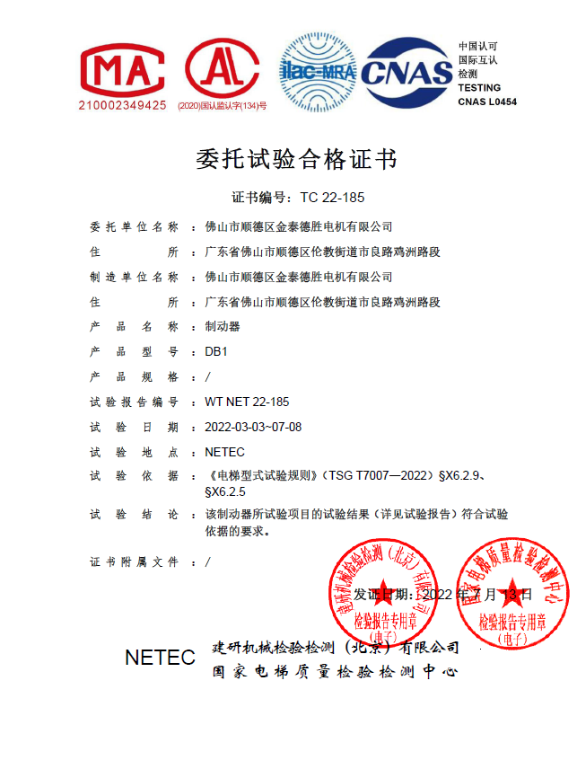 NIDEC 엘리베이터 모터는 국립 엘리베이터 품질 검사 및 테스트 센터, 광동 특수 장비 검사 및 연구소, Shenzhen 특수 장비 안전 검사 연구소, Shanghai Jia -Tong University 및 Shanghai Jia -Tong University 및 TUV/MIRTEC/CSA/UL/SGS를 포함한 외국 기관과 같은 많은 제품 인증 기관과 좋은 전략적 협력 관계를 유지합니다. 이러한 기관은 강력한 기술 지원과 최적화 된 인증 솔루션을 제공 할뿐만 아니라 최종 고객의 인증 요구를 효율적으로 충족시켜 다양한 제품의 인증을 적시에 완료합니다.