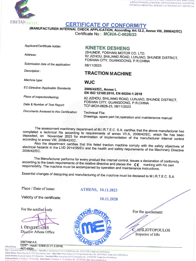 4. EU CE 인증 (모터의 기계 지침 및 EN81 브레이크 인증에 대한 CE 인증) : WJC/WTY1/WR/WTY2와 같은 모든 일련의 모델을 다룹니다.