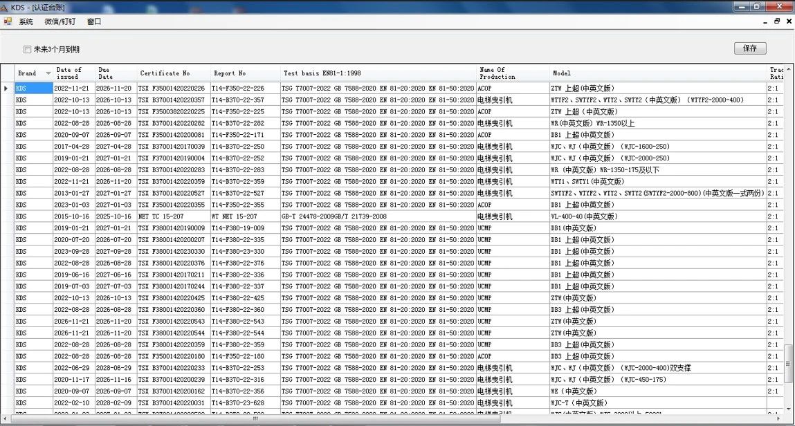 NIDEC 엘리베이터 모터의 모든 제품 인증 증명서는 통합 관리를위한 제품 인증 관리 시스템에 입력됩니다. 인증 관리 시스템은 최초 인증을 위해 제품 등록에서 수명주기 동안 인증서의 검증 및 갱신에 대한 전체 프로세스 관리를 수행하고 동시에 각 인증서의 유효 기간을 실시간으로 모니터링합니다. 인증서가 만료되기 4 개월 전에 적시 조기 경고를 제공하여 제품 인증 인증서의 지속적인 유효성을 보장합니다.